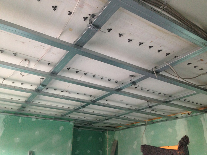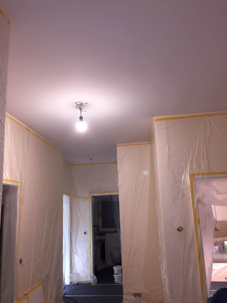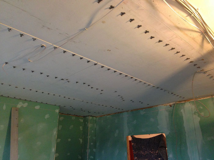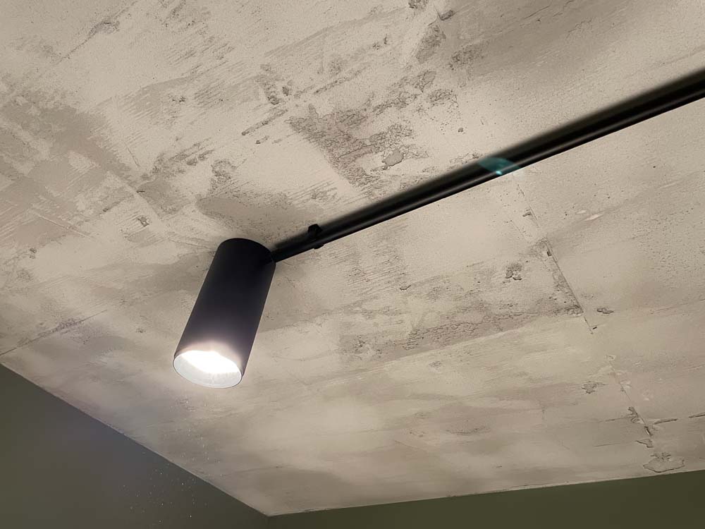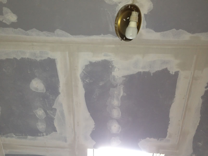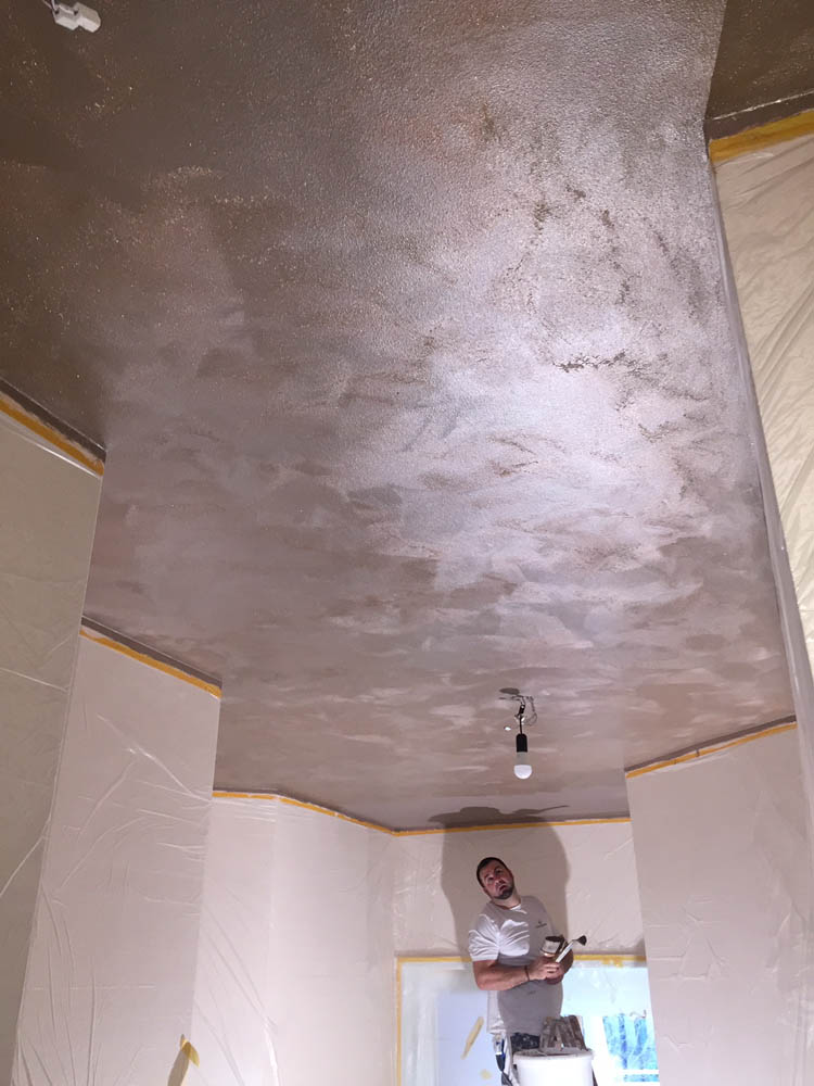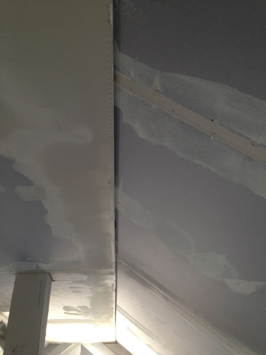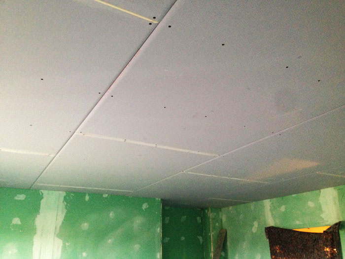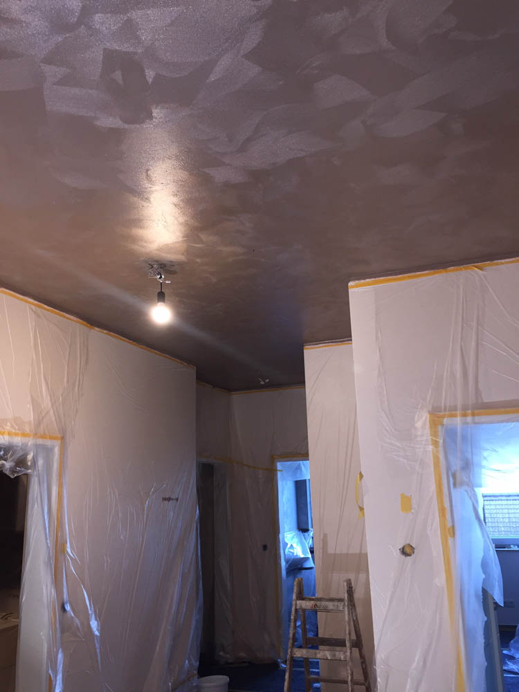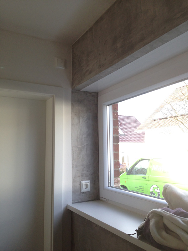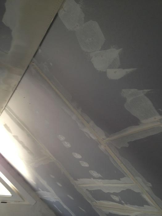 Beton-Imitation auf Kalkbasis, Zimmerdecke mit Rigips beplanken und mit Lehmspachtel beschichten: