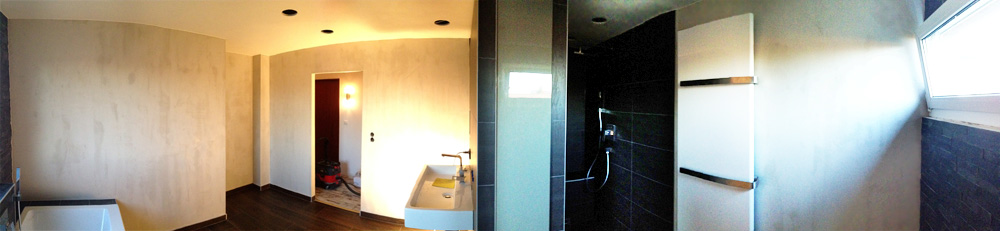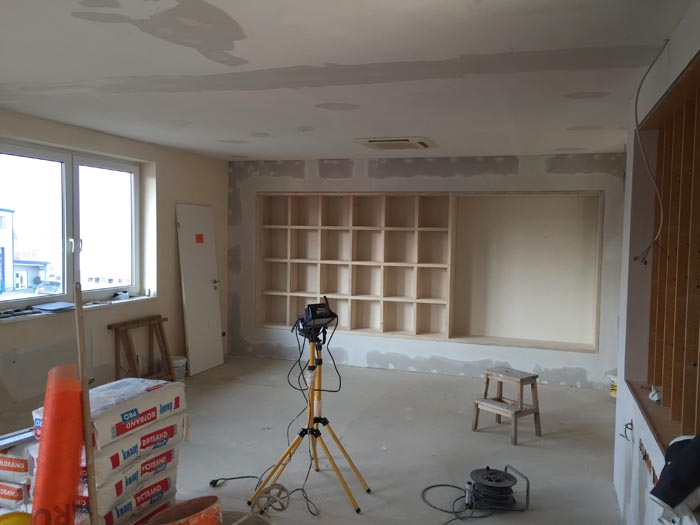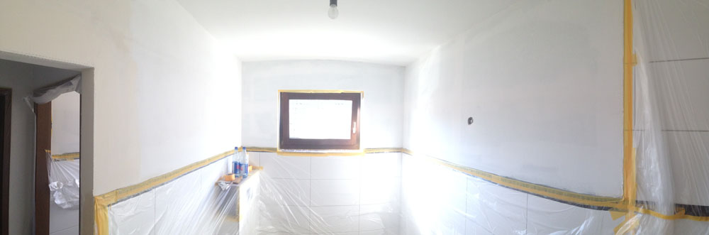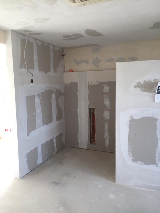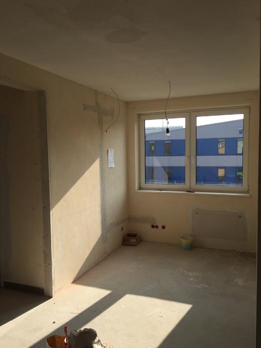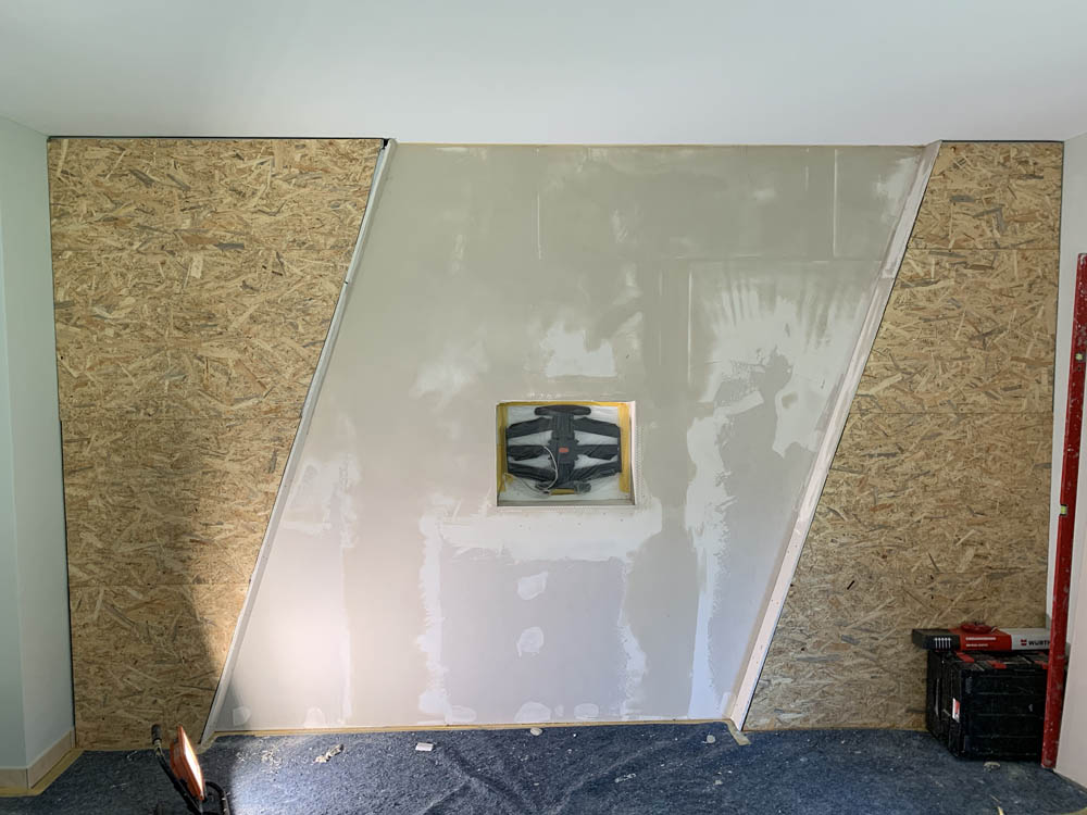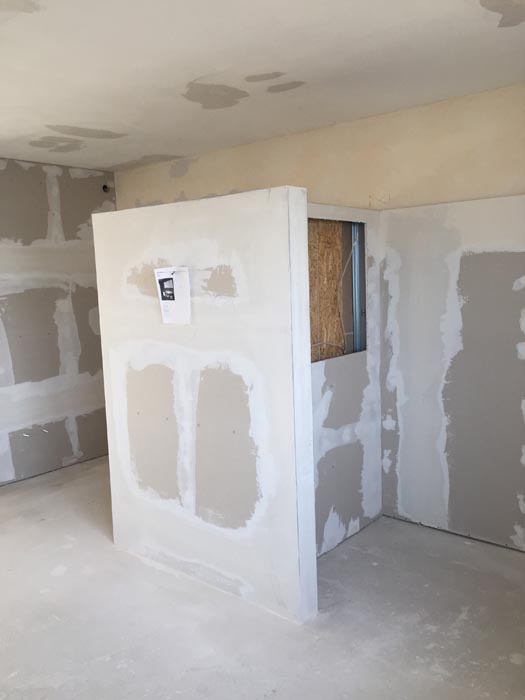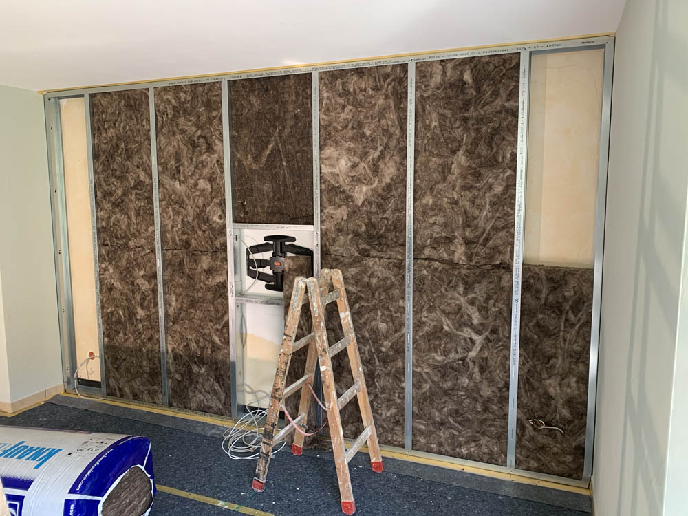 Die Wände wurden gedämmt und anschließend zweimal verspachtelt.
