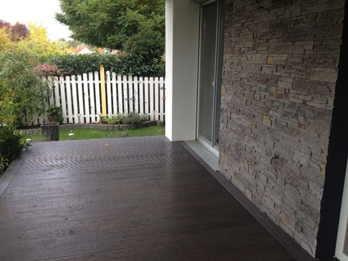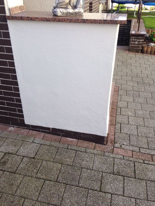Die Akzentwand wurde mit italienischen Klinkern beklebt und verfugt.