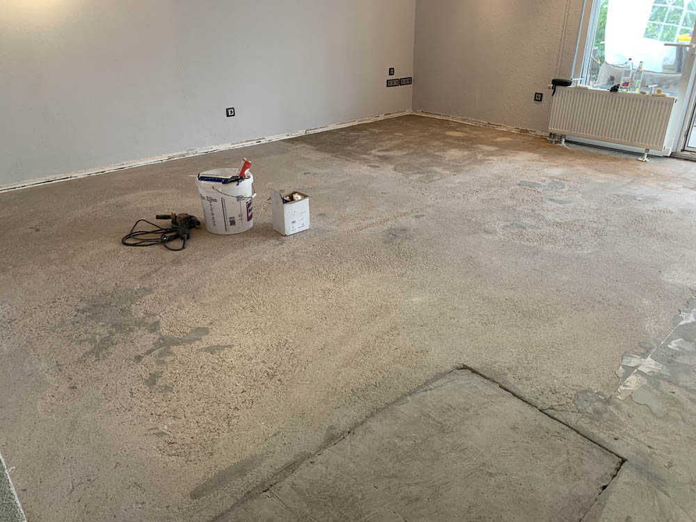 - Entfernen der alten Decken-, Wand- und Bodenbeläge