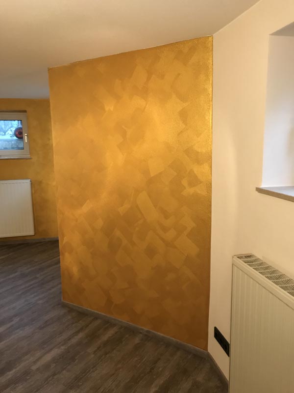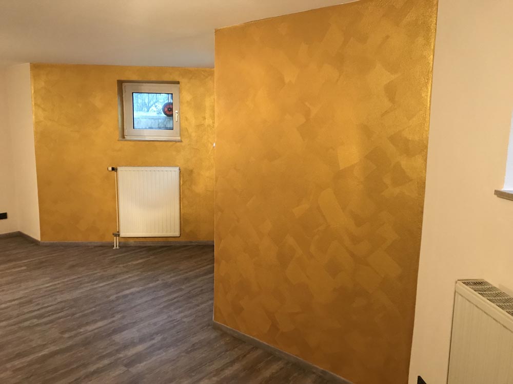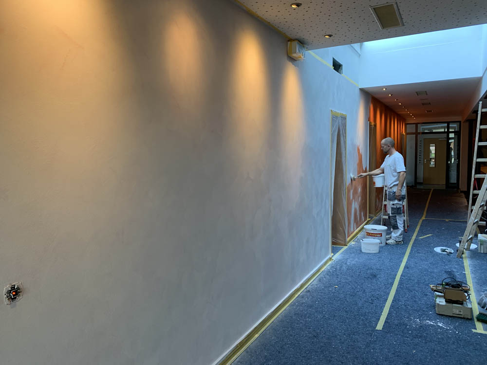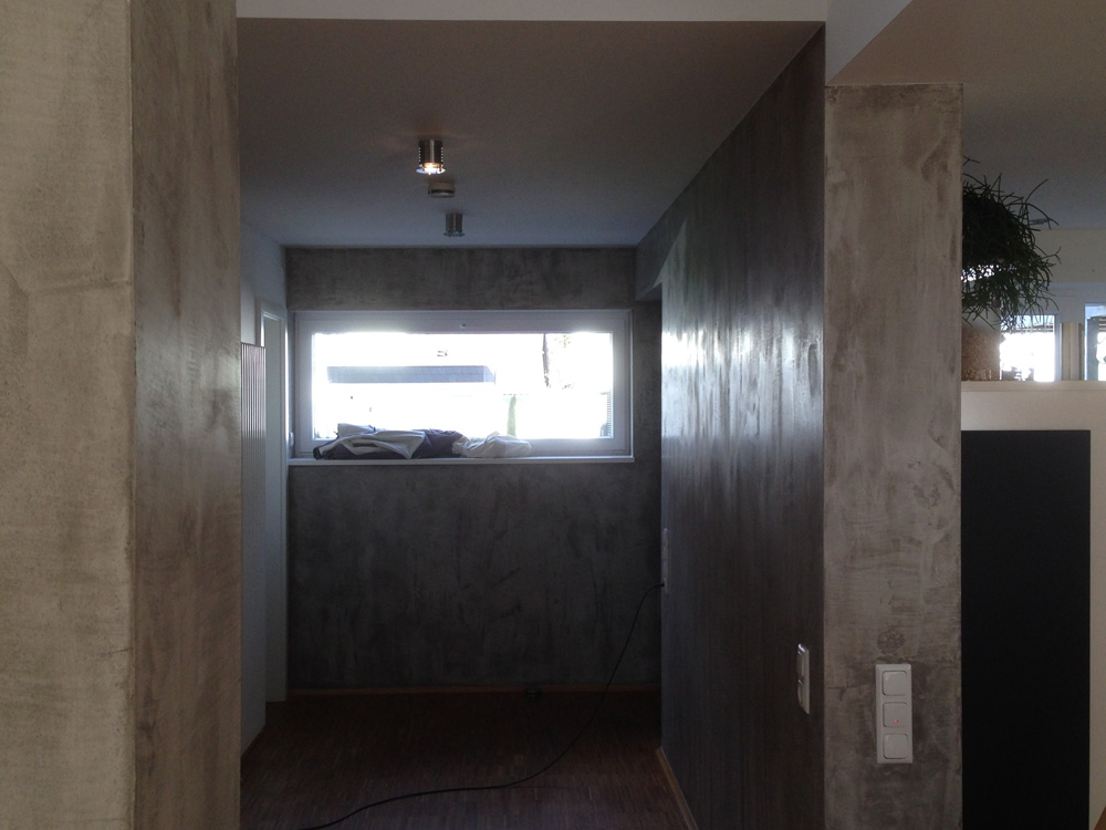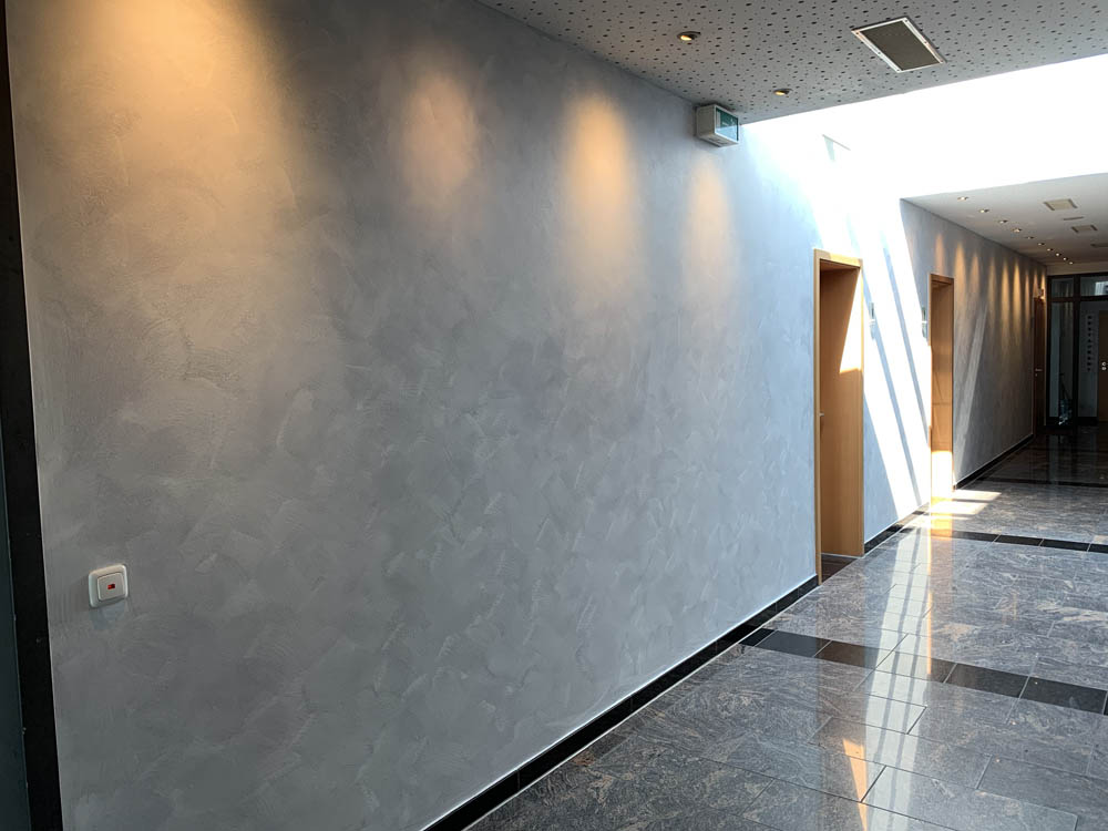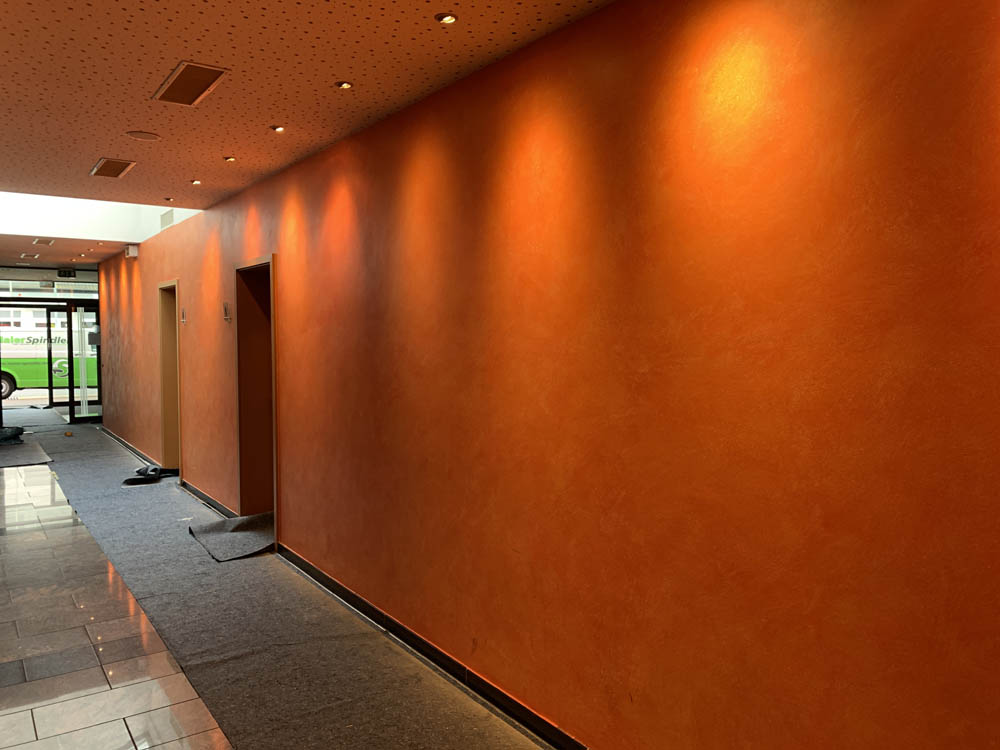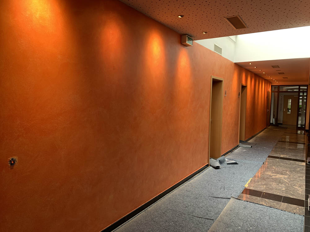 Der Showroom der Firma Haustechnik Kotyza wurde umgebaut und neu gestaltet. Es wurden alle Maler- und Tapezierarbeiten in hochwertigen Malertechniken ausgeführt, wie z. B. eine Goldtechnik, Betonimitation und Rostoptik, weiterhin wurden Akzentwände mit Lehmspachtelputz beschichtet.