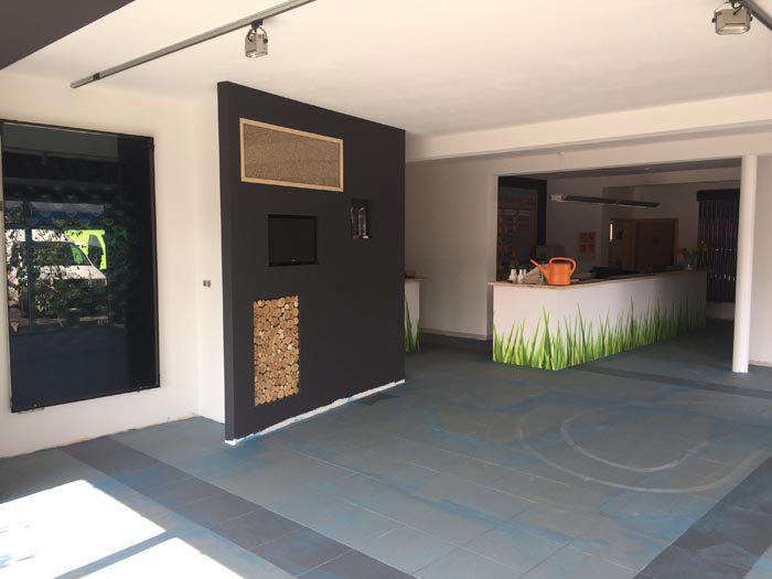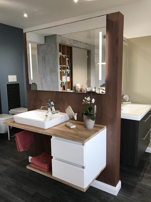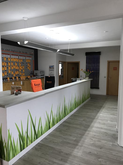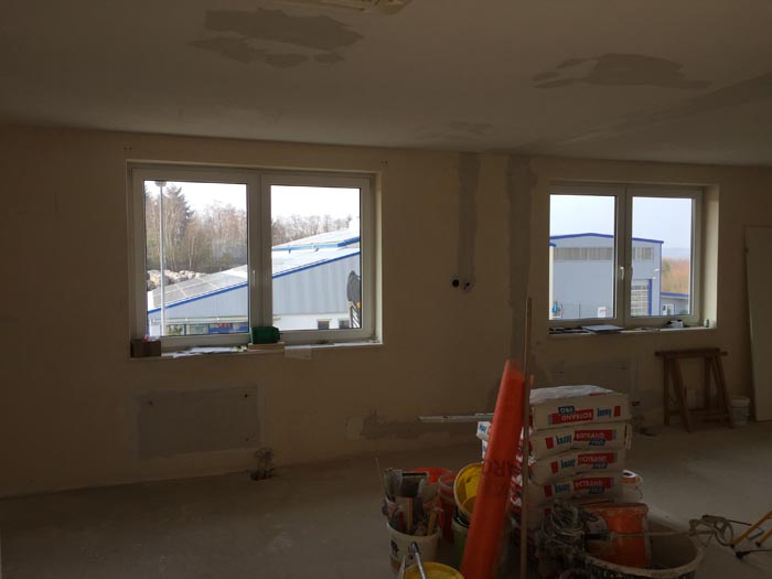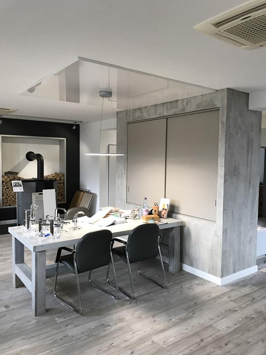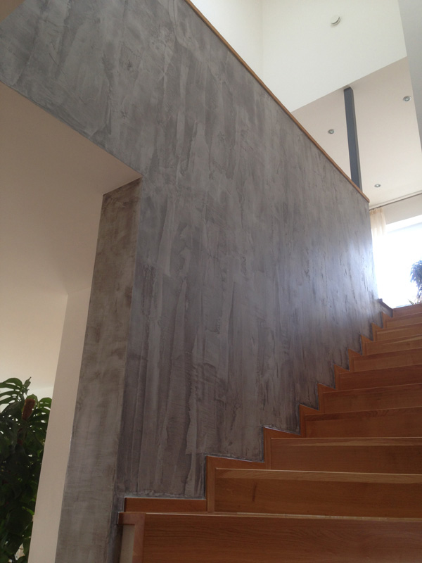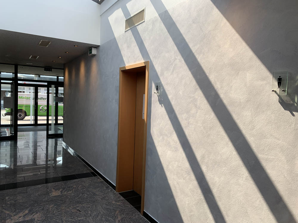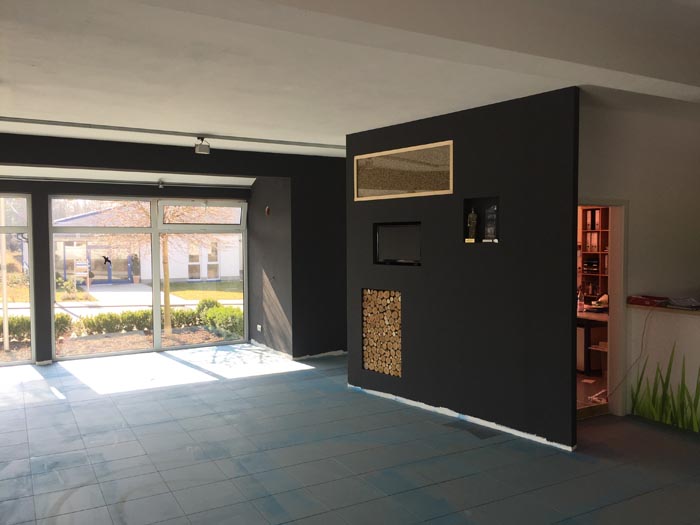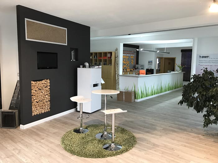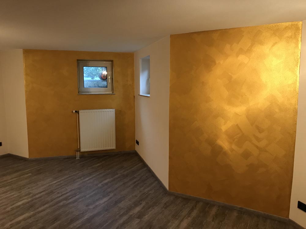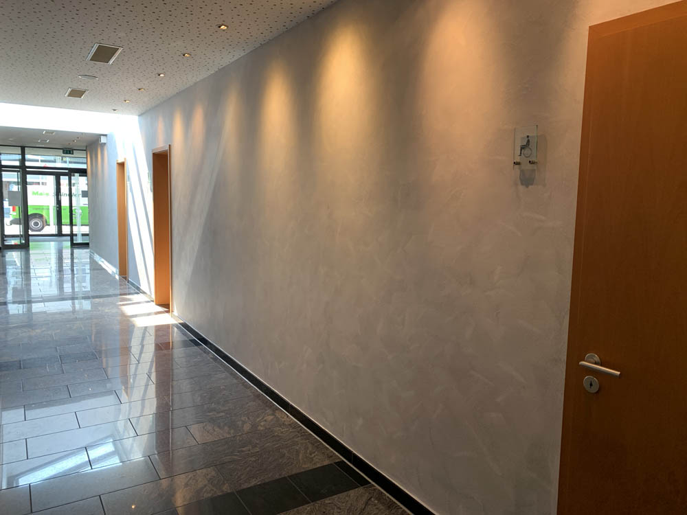 Der Showroom der Firma Haustechnik Kotyza wurde umgebaut und neu gestaltet. Es wurden alle Maler- und Tapezierarbeiten in hochwertigen Malertechniken ausgeführt, wie z. B. eine Goldtechnik, Betonimitation und Rostoptik, weiterhin wurden Akzentwände mit Lehmspachtelputz beschichtet.