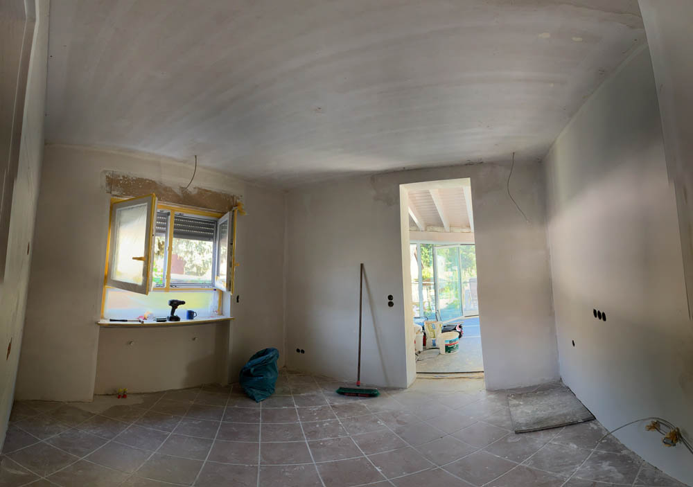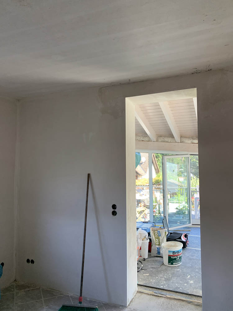 Verputzarbeiten und Lehmspachteltechnik auf Decke und Wände