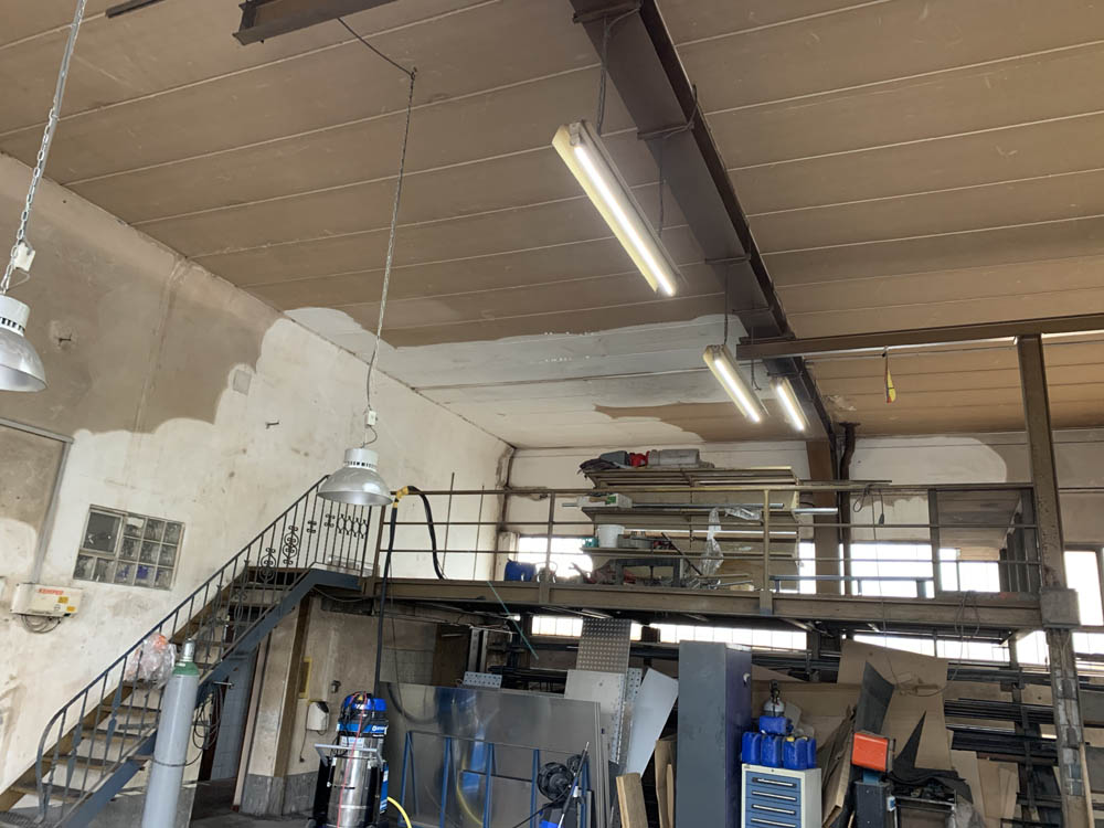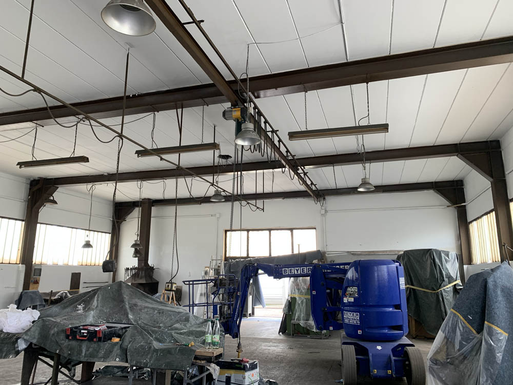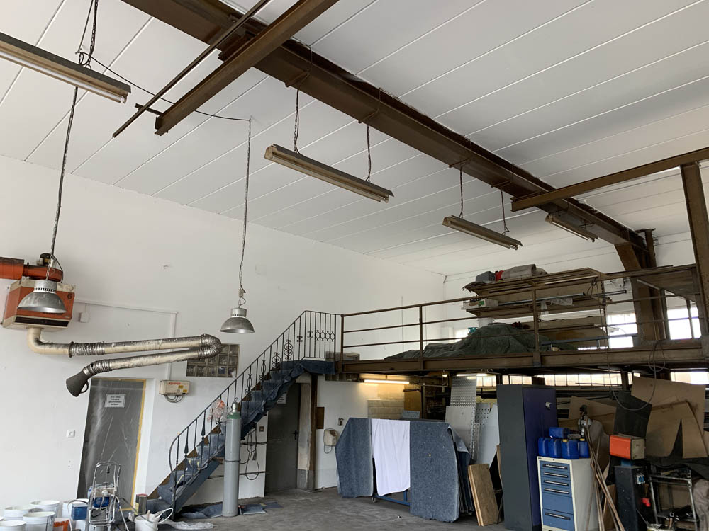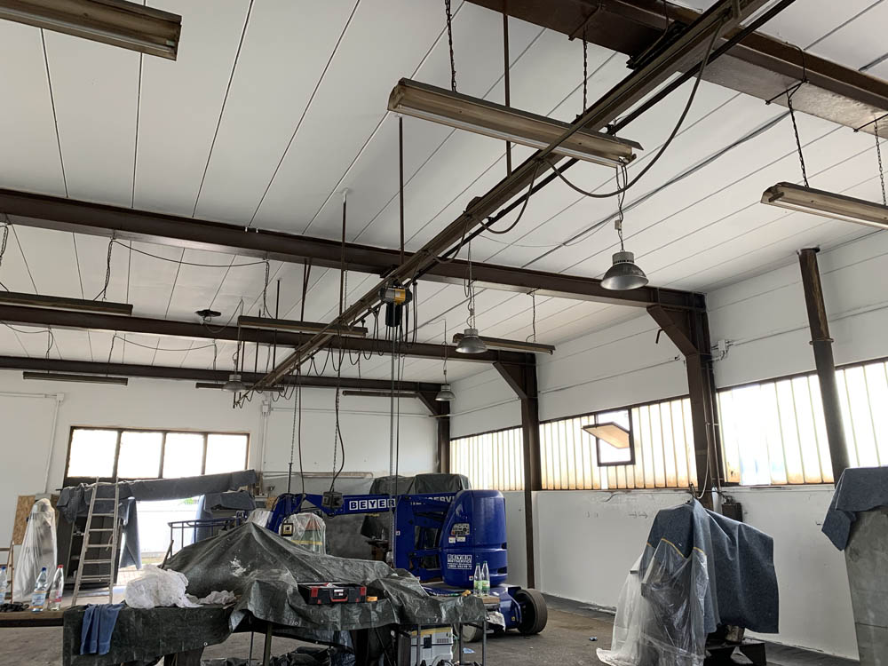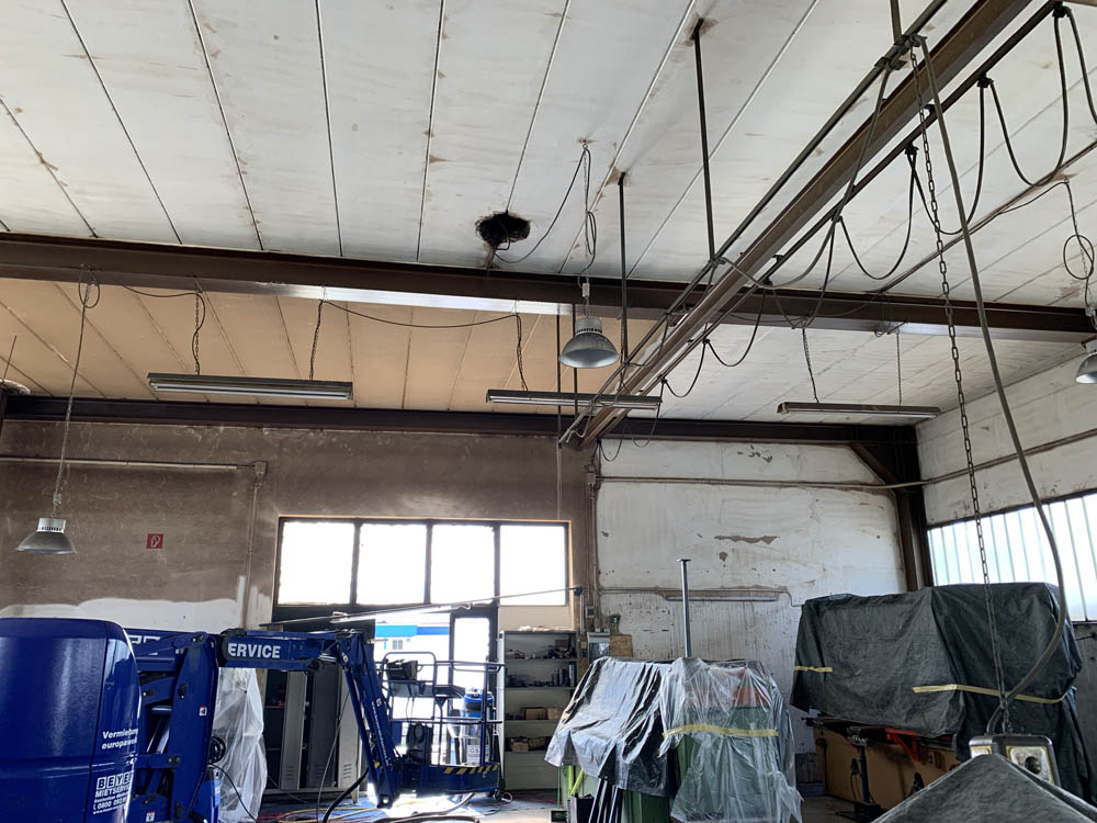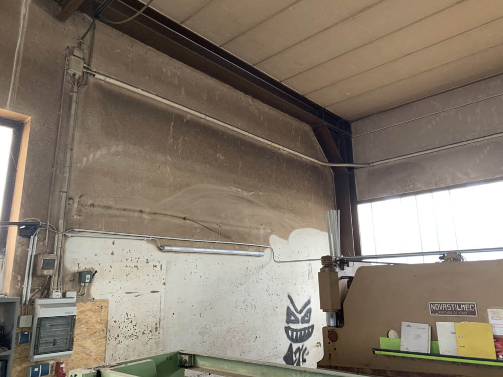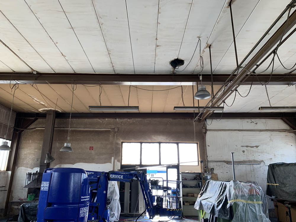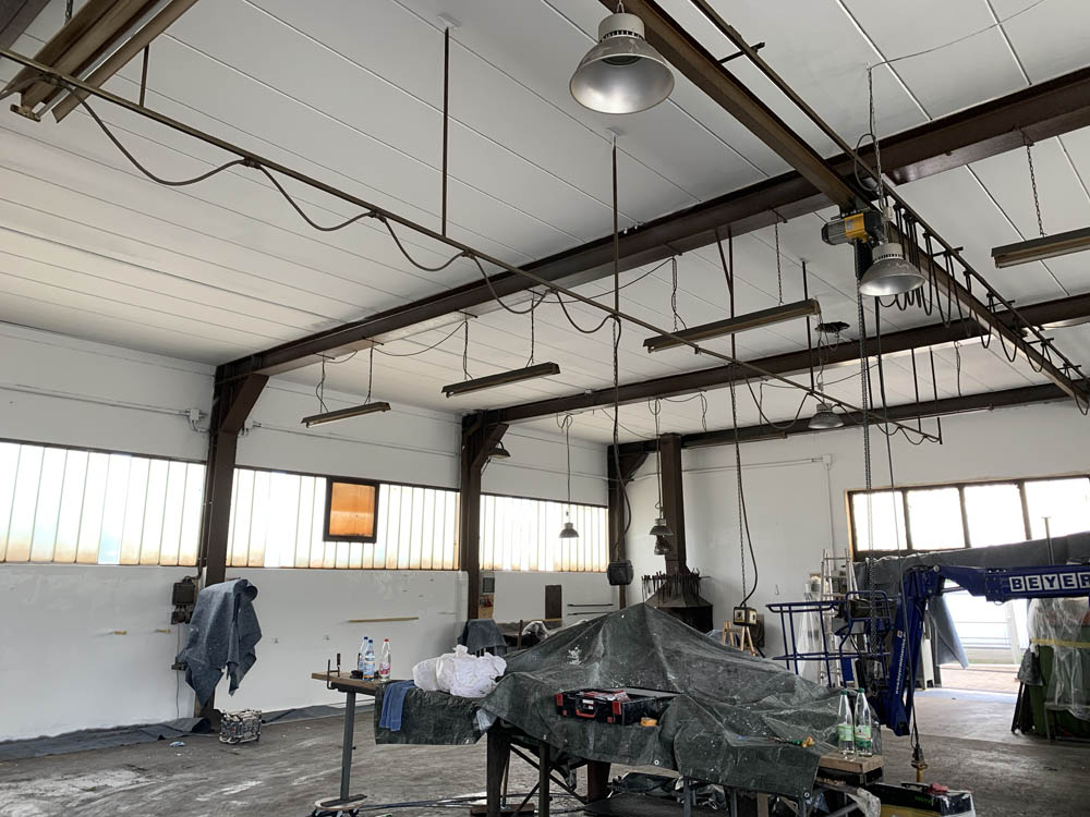Hier ist eine Lagerhalle zu sehen, die mit einer Rigipswand abgestellt und verkleidet wurde.