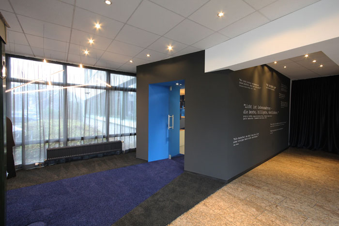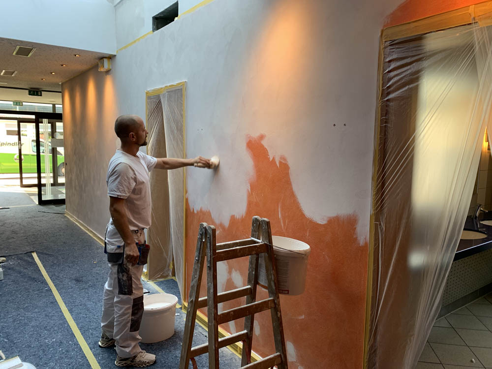 Neugestaltung und Renovierung eines Showrooms eines bekannten Leuchtmittelherstellers. Es wurden Wände und Decken neu gestrichen, Teppichböden zugeschnitten und verklebt sowie Wände tapeziert.