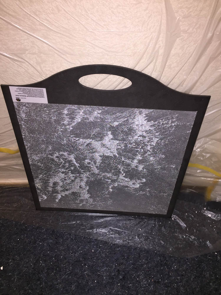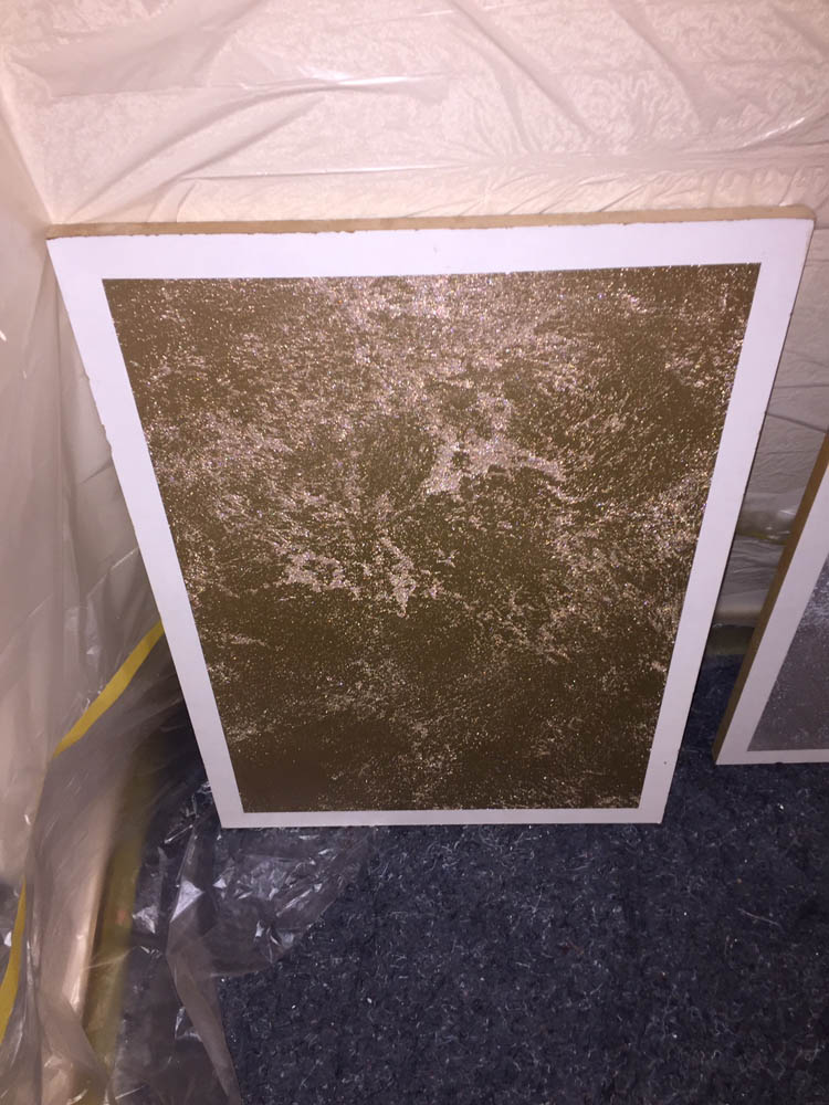 Auf den Fotos ist der Ablauf der Vorbereitung und Ausführung der Metalleffekttechnik zu sehen.