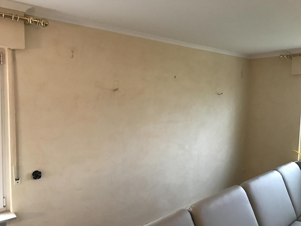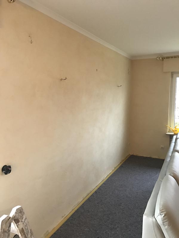 Auf den Fotos ist die Renovierung eines Wohnzimmers zu sehen.